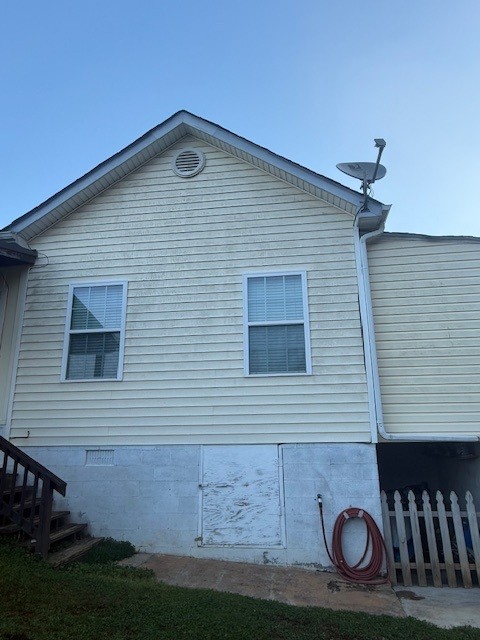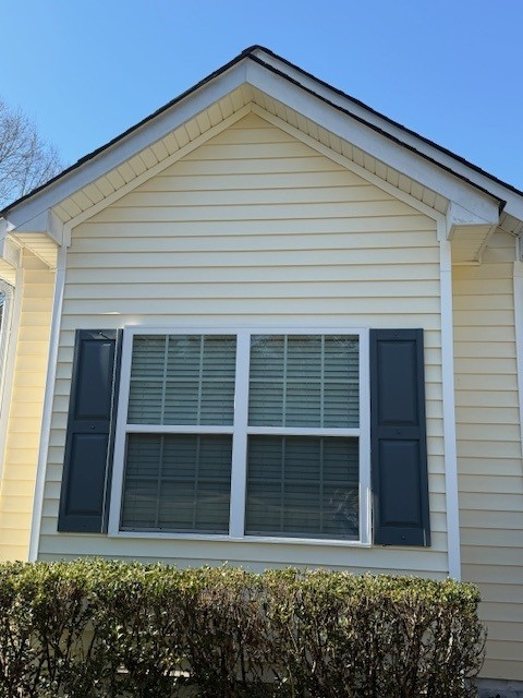The siding had heavy green algae in several areas. Using the same softwash approach, we treated the siding so the algae would lift from the surface and come off with a gentle rinse. The result was a much cleaner exterior appearance and siding that no longer showed the thick green staining that had been present before the wash.