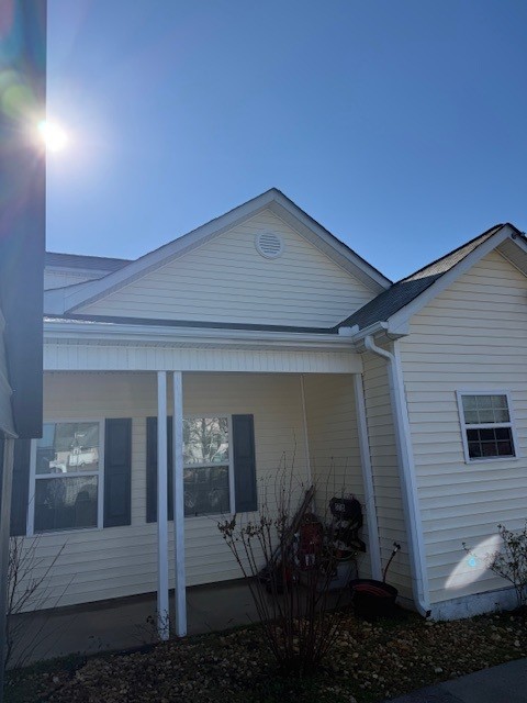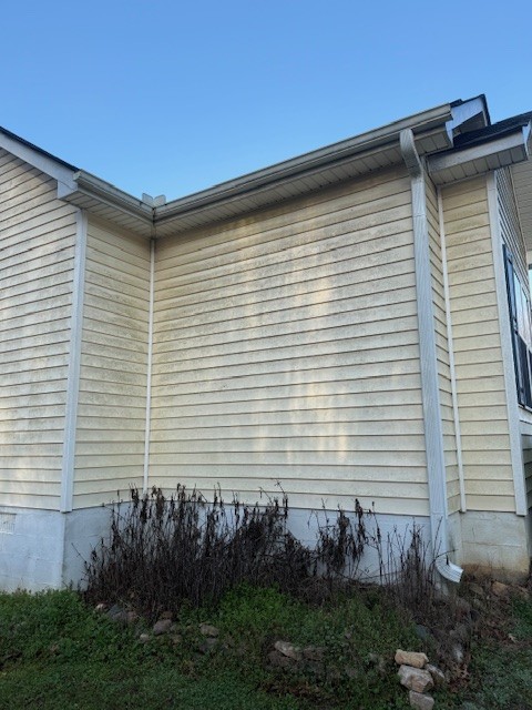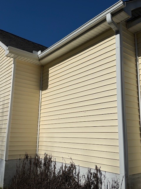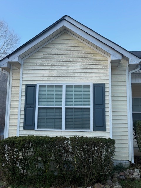 For this service we used our softwash methods, which are specifically designed to remove organic growth and stains without using high-pressure washing that can harm roofing materials or siding. On arrival we assessed the roof and exterior siding to confirm the areas with algae, black streaks, and other organic buildup. Then we applied our cleaning solution and allowed it to work on the affected surfaces.
