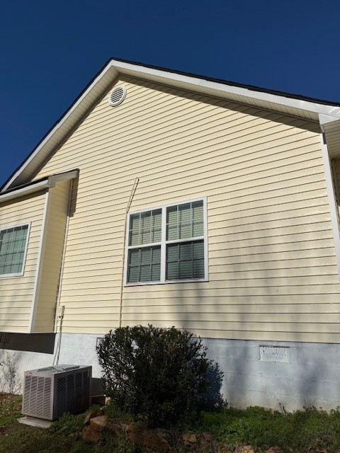 Our team from Senoia Softwash in Senoia, GA was called out to this beautiful property in Meansville, GA to perform a full roof and house wash. The homeowner had noticeable organic growth and black streaks on the roof, plus green algae covering much of the siding. They wanted the property cleaned thoroughly, so we brought our softwash equipment and professional experience to the job.